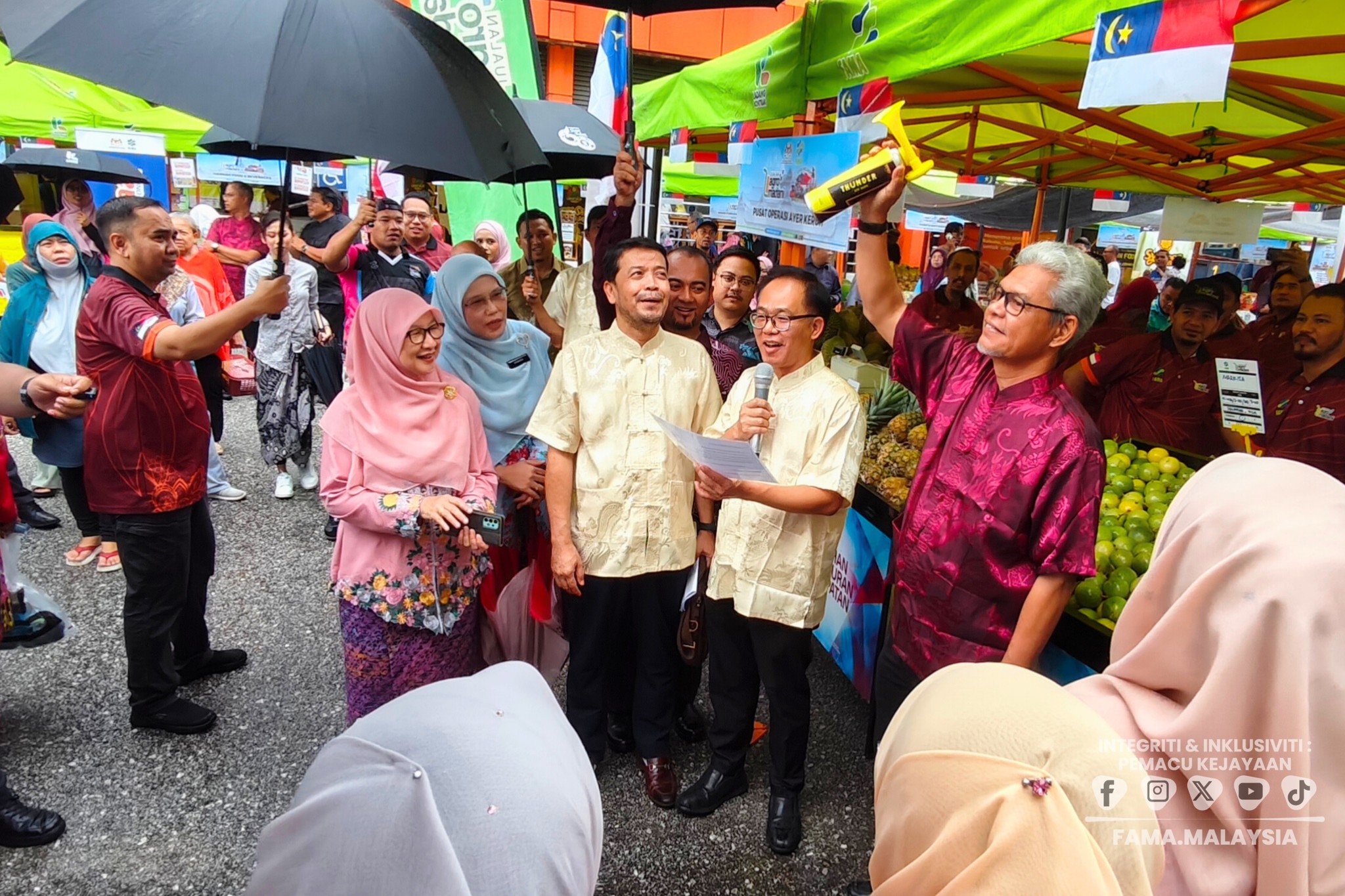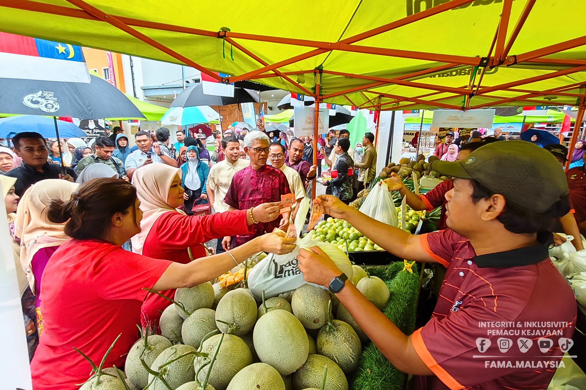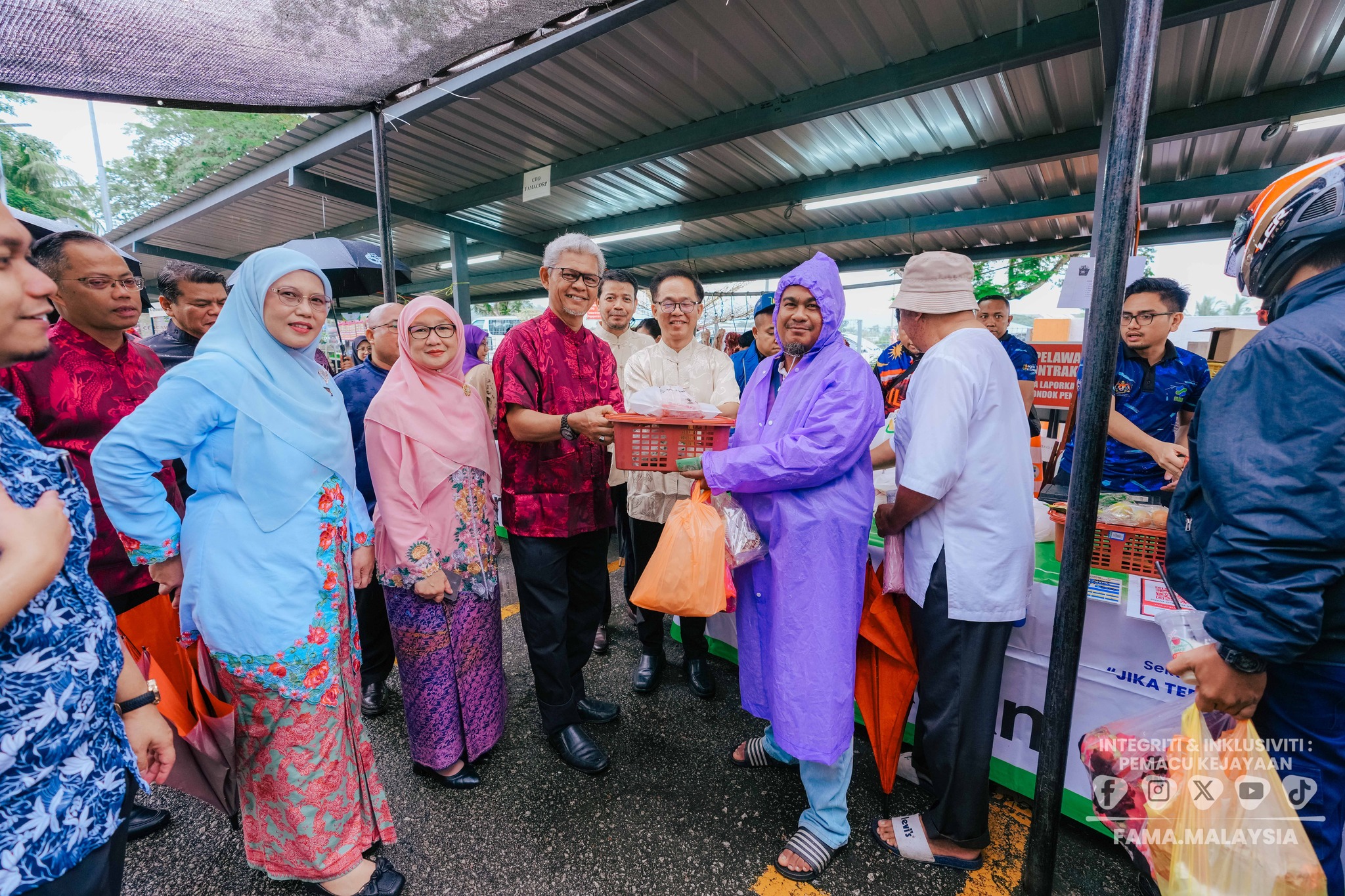 Majlis perasmian telah disempurnakan oleh YB Tuan Low Chee Leong, Timbalan Exco Kemajuan Desa, Pertanian dan Keterjaminan Makanan Negeri Melaka. Turut hadir YBrs. Tuan Haji Aminuddin bin Zulkipli, Pengerusi FAMA serta YBrs. Encik Faisal Iswardi bin Ismail, Timbalan Ketua Pengarah (Sekuriti Makanan & Operasi) FAMA, YBrs. Encik Shahrizan bin Sudiman, Timbalan Ketua Pengarah (Khidmat Pengurusan) FAMA & YBrs. Puan Suraya binti Mohd Yusof, Timbalan Ketua Pengarah (Pembangunan Industri Agromakanan) FAMA. Program turut dimeriahkan dengan tarian selamat datang, bacaan doa, gimik perasmian serta lawatan ke lot jualan usahawan, sekali gus memperlihatkan sokongan berterusan kepimpinan terhadap agenda pemasaran hasil agromakanan tempatan.