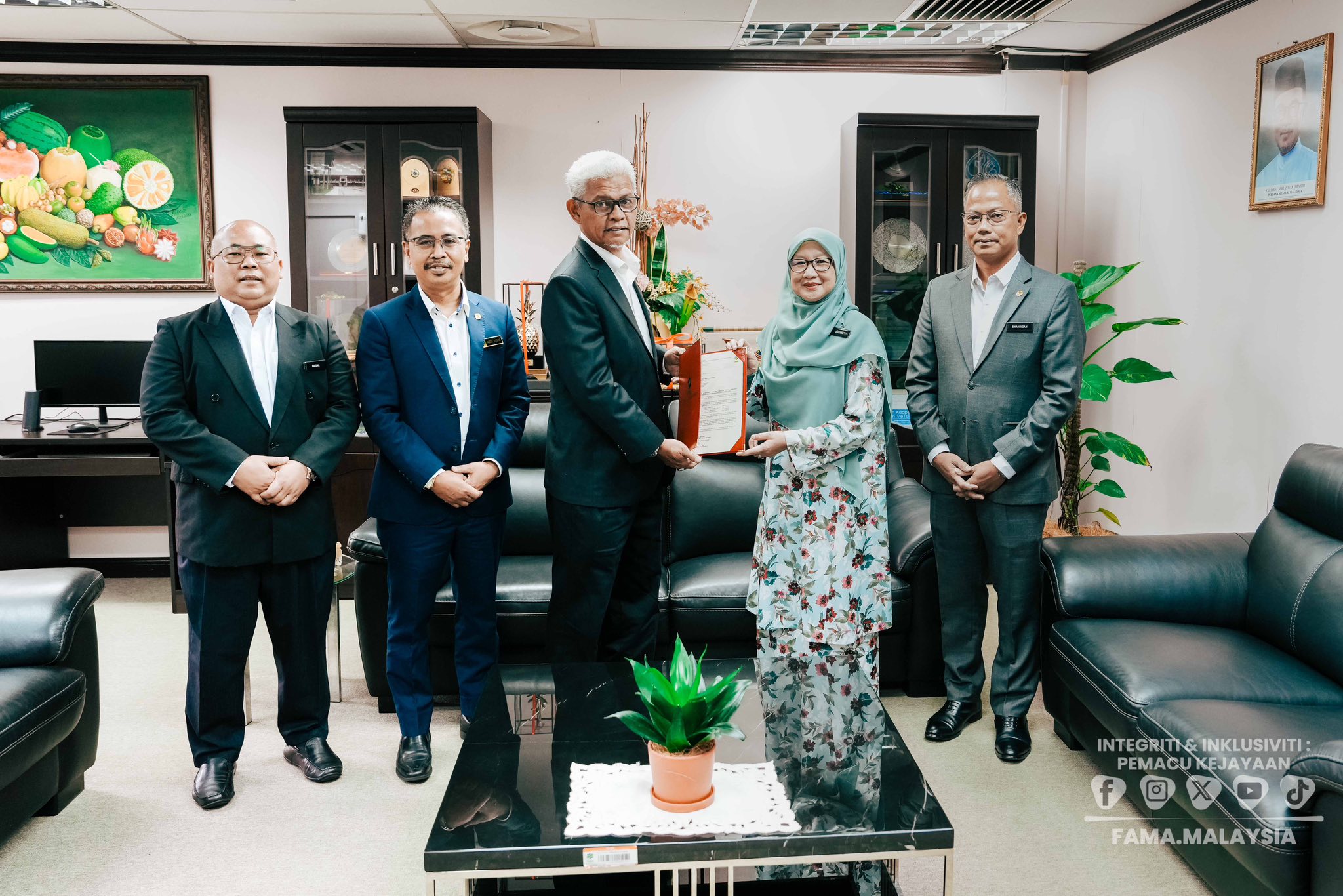 Majlis menandatangani surat terima dan penyerahan watikah pelantikan telah disempurnakan oleh YBrs. Tuan Haji Aminuddin bin Zulkipli, Pengerusi FAMA, bersama YBrs. Encik Abdul Rashid bin Bahri, Ketua Pengarah FAMA, YBrs. Encik Faisal Iswadi bin Ismail, Timbalan Ketua Pengarah (Pembangunan Industri Agromakanan) FAMA, YBrs. Encik Shahrizan bin Sudirman, Timbalan Ketua Pengarah (Sekuriti Makanan & Operasi) FAMA serta YBrs. Puan Intan Suraya Binti Ibeni Hajar, Pengarah Kanan, Pengurusan Sumber Manusia.
