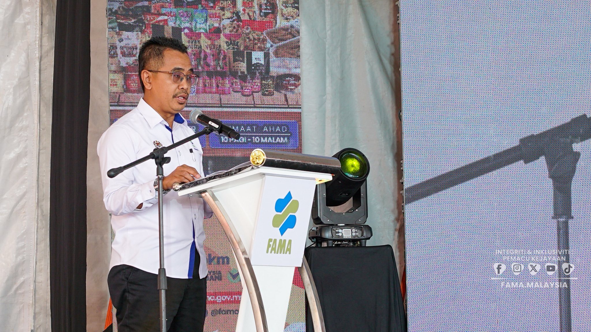 Majlis perasmian disempurnakan oleh YBhg. Dato’ Luqman bin Ahmad, Timbalan Ketua Setiausaha (Pembangunan) KPKM. Turut hadir YBrs. Encik Abdul Rashid bin Bahri, Ketua Pengarah FAMA, YBrs. Encik Faisal Iswardi bin Ismail, Timbalan Ketua Pengarah (Sekuriti Makanan & Operasi) FAMA serta barisan kepimpinan KPKM dan pegawai kerajaan negeri.